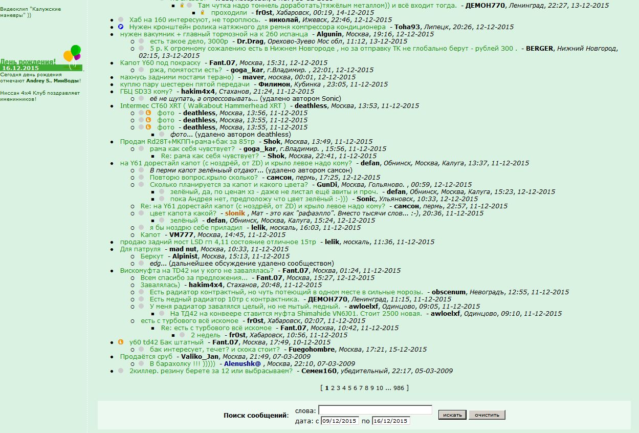 Да чего профиль, тут 6 лет барыжества пропало, темы 09 года на первой странице! - Семен160, Кончай бухать!, 09:42, 15-12-2015